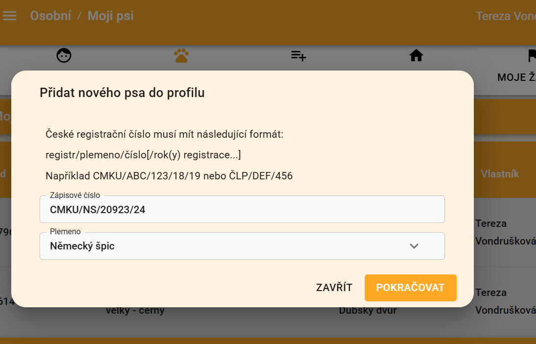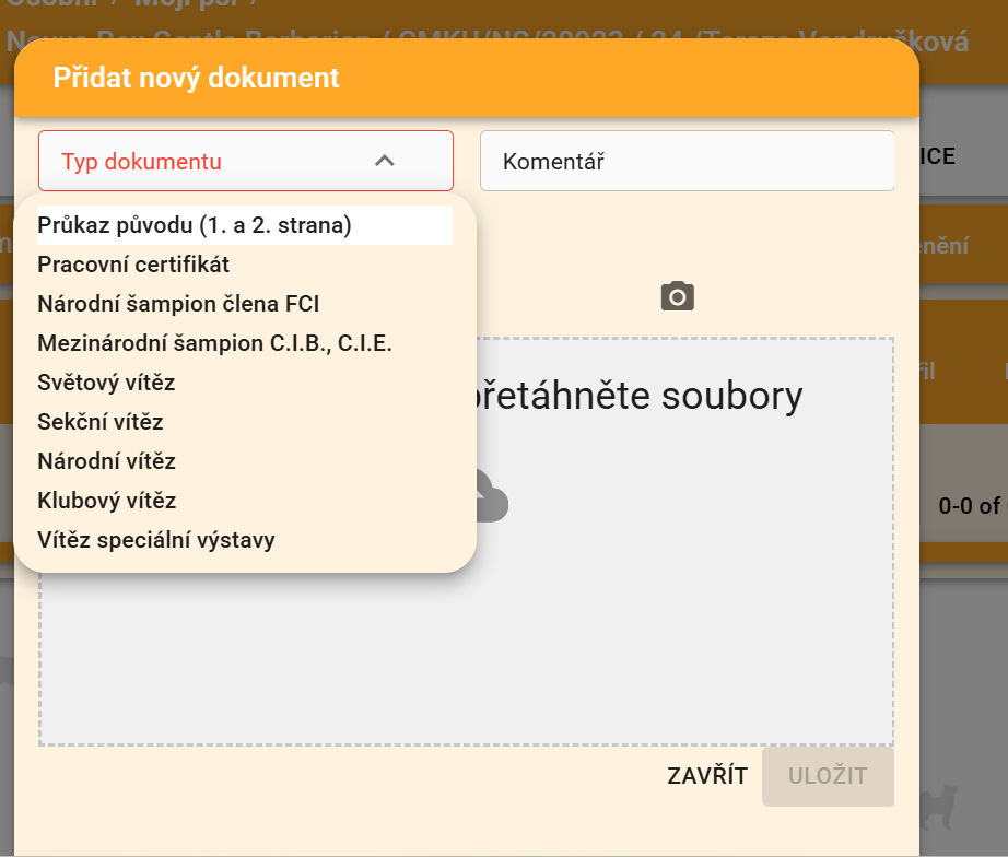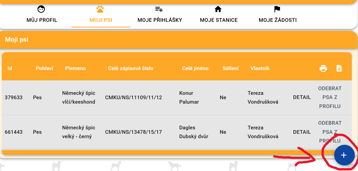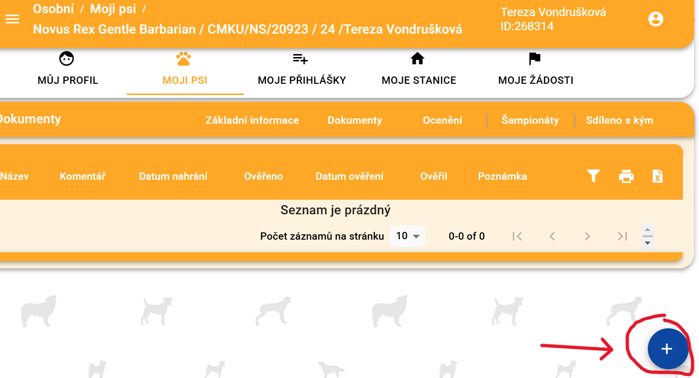 KROMĚ RODOKMENU SE ZDE DÁ NAHRÁT ŠAMPIONÁT! PLATÍ U PSŮ, KTEŘÍ MOHOU BÝT HLÁŠENI UŽ DO TŘÍDY VÍTEZŮ/ŠAMPIONŮ, BEZ NAHRÁNÍ SPLNĚNÉHO ŠAMPIONÁTU TO NELZE.