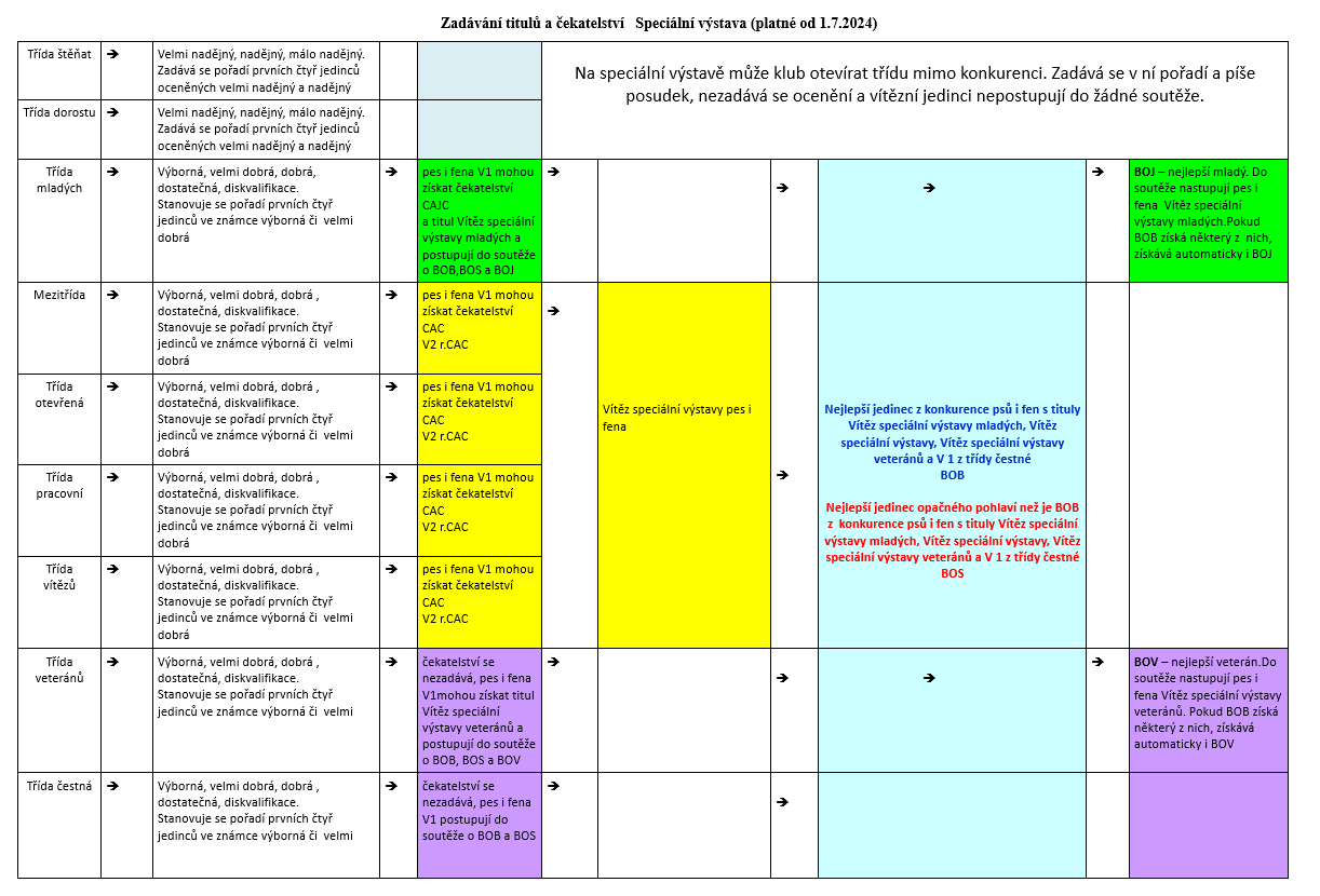 Dovolím si sem vložit schéma z ČMKU o udělování známek a titulů na speciální výstavě - pro představu