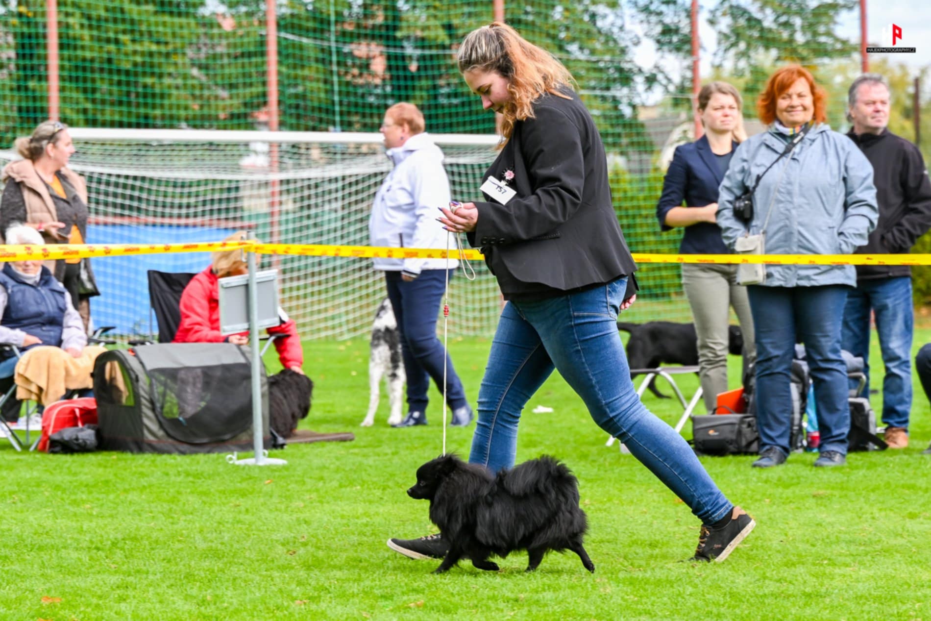 ( postoj u 4 měsíčního vlčího špice na 1. výstavě)